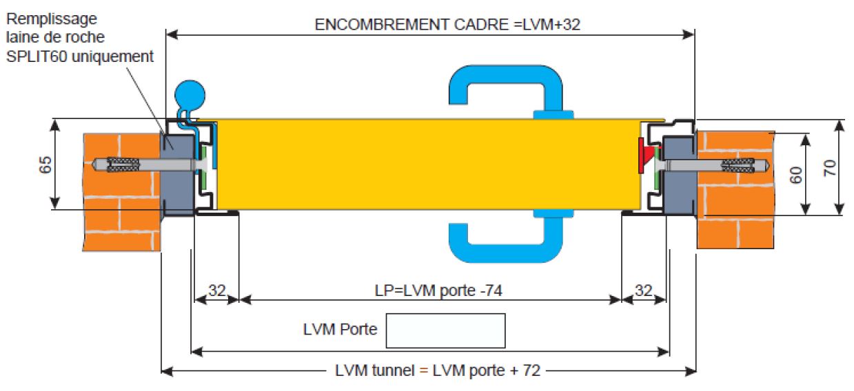 LVM Tunnel = LVM porte + 72mm HVM Tunnel = HVM porte + 36mm