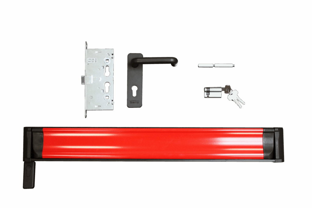 Kit anti-panique push No Panic et sa contre-serrure anti-panique.