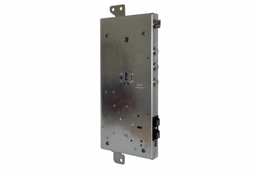 Serrure motorisée Hibry poussante gauche. Également valide pour la version tirante droite.